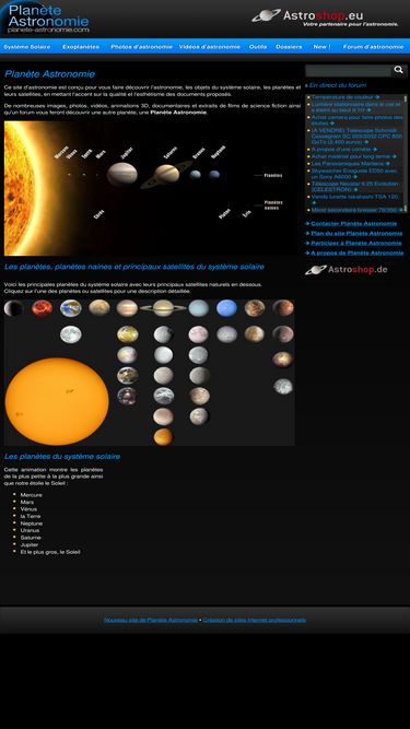 planète astronomie est un site d'astronomie consacré aux planètes du système solaire et à leur satellites naturels. photos, vidéos, forum
