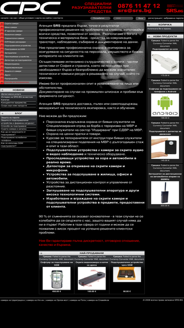 srs.bg е интернет магазин за шпионско оборудване. ние предлагаме мини камери, подслушвателни устройства, безжични камери, видеорекордери, gsm подслушване и заглушаване. на сайта ни можете да гледате камери монтирани на ключови места в столицата - цариградско шосе, орлов мост и попа