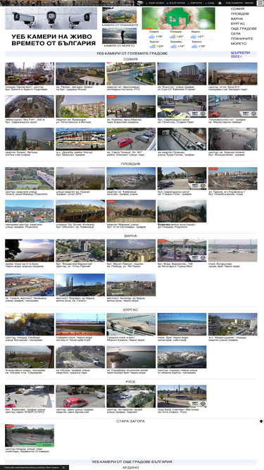 българия уеб камери и информация за времето в европа. всички уеб камери събрани на едно място. сайт webcamsbg.com за времето днес от българия чрез онлайн уеб камери за видео наблюдение на живо от градове, села, вилни зони бизнес камери морски и планински курорти времето на живо от българия: софия пловдив варна бургас русе стара загора, черно море курорти българия камерите vremeto онлайн live webcams camera веб камеры dalivali