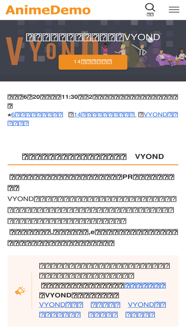 81%VYONDの使い方 基本操作まとめ VYOND Studio(以下VYOND)ご体験版お試しありがとうございます。このページではVYONDの基本的な使い方をまとめています。まずは一通りご覧いただきアニメーションの制作を行っていただきますようお願いいたします。メールマガジンにご登録いただくとPDF版操作ガイドがダウンロードできます。 5分でわかるVYOND体験版(初めてのVYOND動画作成) 画面では体験版となっていますが使い方は製品版も同じです。PC(windows、mac)にて稼働します。VYONDはオンライン上で稼働するクラウド型サービスですので、端末へインストールす