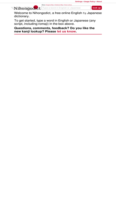 76%nihongodict.com is a fast, easy to use english to japanese and japanese to english dictionary