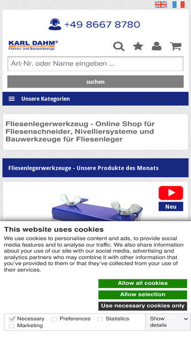 Messgeräte,Wasserwaagen, Feuchtemessgeräte - Alles für Fliesenleger & Bauhandwerk bei Karl Dahm- Profiwerkzeuge