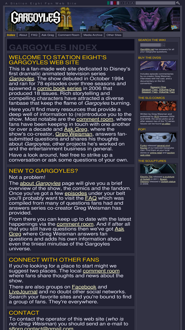 a fan site devoted to gargoyles, a dramatic animated television series from disney. home of ask greg, in which the co-creator of gargoyles, greg weisman, responds to fan-submitted questions. get the comics. buy the dvds. enjoy this great show. gargoyles.