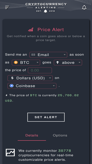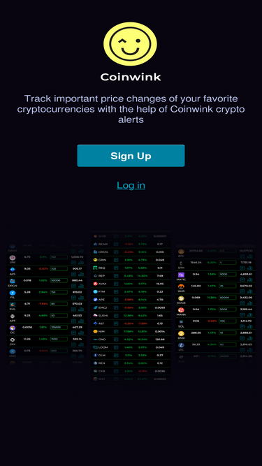 Coinwink is a cryptocurrency price alerts, watchlist and portfolio tracking app