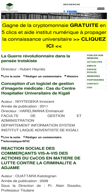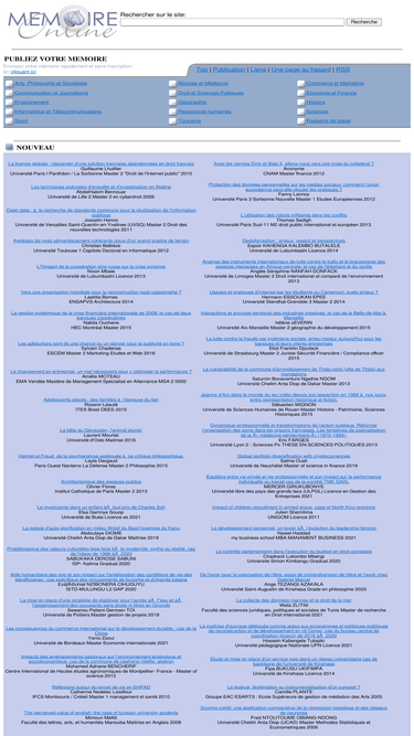 ce site contient des mémoires réalisés par des étudiants de 3ème cycle dans de nombreux domaines (droit, économie, nouvelles technologies, sciences, biologie et médecine ...)