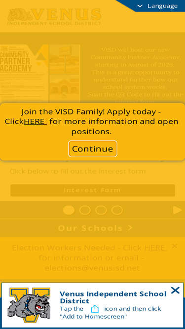 EXCELLENCE GROWS HERE. IN EACH ONE. EACH DAY. Venus ISD serves 2304 students and is located 25 miles south of the Dallas-Fort Worth Metroplex. Once a rural farming area, Venus has grown into a small suburban community. The Venus Independent School District has been committed to providing excellence in education for its students since it was founded in 1914.