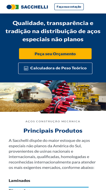 A Sacchelli atua desde 1966 na distribuição de aços especiais para construção mecânica, atendendo diversos segmentos industriais.