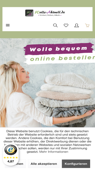 Seit 1999 betreibe ich meinen Internet-Versandhandel. Ich habe mich auf exklusive Wolle und Garne zum Stricken spezialisiert. Bei mir finden Sie Garne von Noro, Debbie Bliss, Atelier Zitron, Ingeborg Michels, Istex Alafoss Lopi