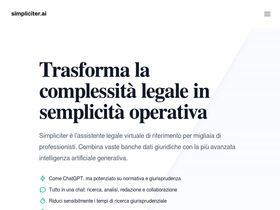 93%La migliore intelligenza artificiale generativa per il diritto in Italia. Simpliciter affianca avvocati, imprese e pubbliche amministrazioni ottimizzando ogni operazione. Ampie banche dati, ricerca intelligente, redazione automatica. Il primo mese è scontato!