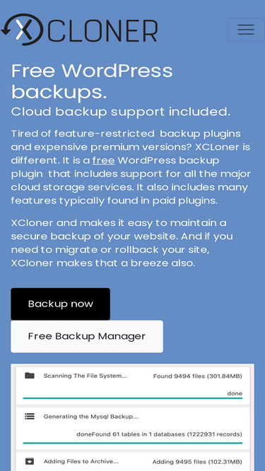 44%XCloner for WordPress is the most robust, modern and well-maintained backup solution we offer. It is available exclusively via the WordPress Plugin Repository.