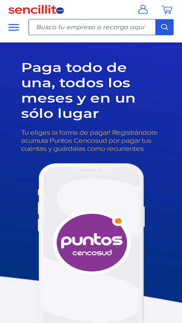 100%sencillito, paga tus cuentas de una, todos los meses, en un solo lugar. paga fácil y online agua, luz, tag, recargas, envíos de dinero desde chile y más