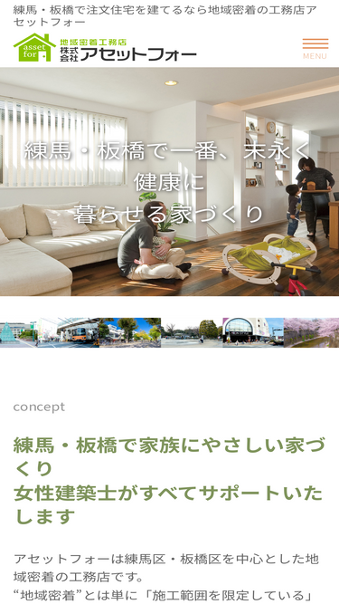98%練馬・板橋でリフォームなら女性建築士とつくる「アセットフォー」。車で15分圏内の「地域密着」たからアフターサポートが安心です。練馬・板橋でリフォームをお考えなら、住宅完成見学会へ是非お越しください。新築、リフォーム、土地探し、おしゃれなデザイン、家事がしやすい間取り、資金計画などお気軽にご相談ください。