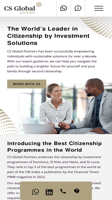 89%Gain global mobility with CS Global Partners. We specialize in citizenship and residency by investment, offering expert advice and trusted international solutions.