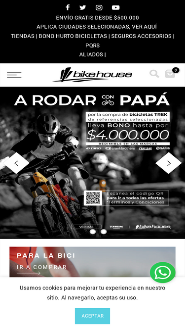 40%Las mejores marcas de ciclismo del mundo en un solo lugar. ¡En Bike House amamos tu pasión! Compra Bicicletas de Montaña, Ruta, E-bikes, bicis para niños y rbanas, accesorios para ciclismo. Somos distribuidores de Trek, Cliff, Bontrager, Continental, Tifosi, Continental, Crakbrothers,Dynamic,Giro, Saris, Time, Cateye.