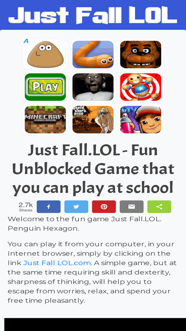 93%just fall.lol is a fun game that you may enjoy! ✅ try to survive in the hexagon world and win a cool prize. ✅ play now at school and work.