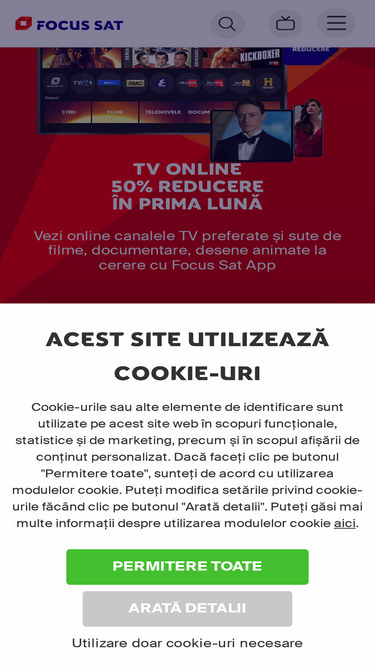 96%Vezi online canalele TV preferate și sute de filme, documentare, desene animate la cerere cu FOCUS+, oriunde în UE.