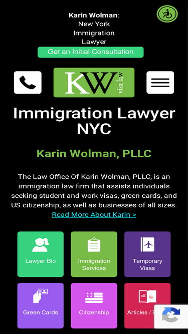 74%The Law Office Of Karin Wolman, PLLC For inquiries by prospective clients regarding immigration matters. NO SALES OR ...