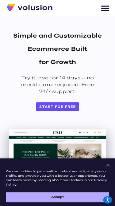 76%Communication is important for any good relationship. That's why Volusion makes its privacy policy so transparent. We even summarize it in everyday language. Read the 'fine print' in 12-point font here. Then, get a FREE trial of our award-winning ecommerce software and start selling 4X more!