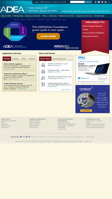 As The Voice of Academic Oral Health, ADEA is the sole national organization representing academic dentistry. Our members include all 87 U.S. and Canadian dental schools, more than 800 allied and advanced dental education programs, more than 50 corporations and approximately 15,000 individuals.