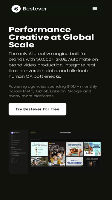 87%Bestever analyzes your text, image and video ads, tells you what's working, and generates winning variations