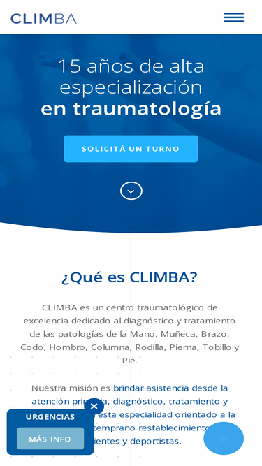 98%CLIMBA es un centro traumatológico de excelencia dedicado al diagnóstico y tratamiento de las patologías de la Mano, Muñeca, Brazo, Codo, Hombro, Columna, Rodilla, Pierna, Tobillo y Pie.