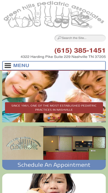 100%Green Hills Pediatric Associates4322 Harding PikeSuite 229Nashville, TN 37205 Phone: (615) 385-1451Fax: (615) 298-4257Billing Office: (615) 385-3443 The office is closed on New Year’s Day, Easter, Memorial Day, July 4, Labor