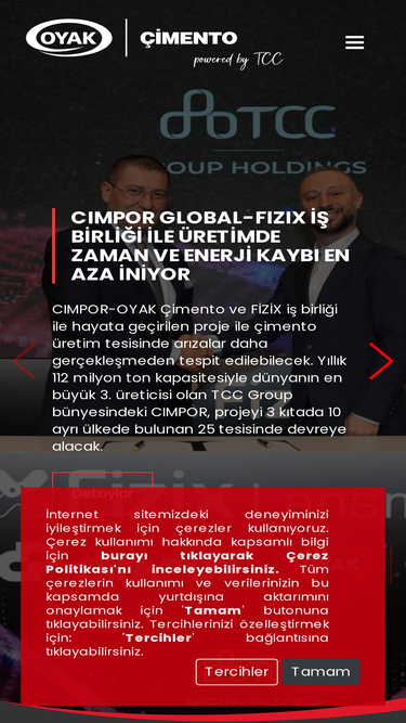 65%Türkiye çimento endüstrisinin kapasite ve pazar lideri olarak faaliyetlerini 7 fabrikada, satışlarını 7 coğrafi bölgede sürdüren OYAK Çimento, verimlilik, yaratıcılık ve kâr odaklılık ilkeleriyle çimento kullanım alanlarını geliştiren, ülke pazarında etkin rol oynayan lider bir topluluktur.