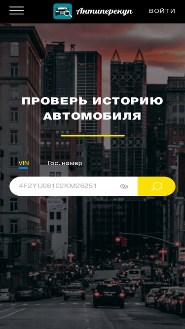 72%Проверьте любой автомобиль на ДТП, розыск, ограничения, скрученный пробег и многое другое по вин или гос номеру — Антиперекуп