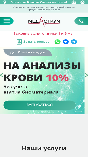 92%Профессиональная медицинская помощь со скидкой - поучаствуйте в акциях нашего медцентра. Запишитесь онлайн.