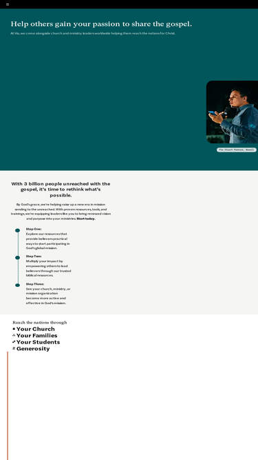 81%Help others gain your passion to share the gospel. At Via, we come alongside church and ministry leaders worldwide helping them reach the nations for Christ. Learn more!