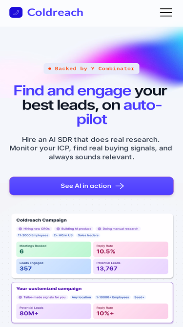 98%SDRx automatically identifies your ICP, researches accounts, finds contact data and engages them based on their buyer journey.