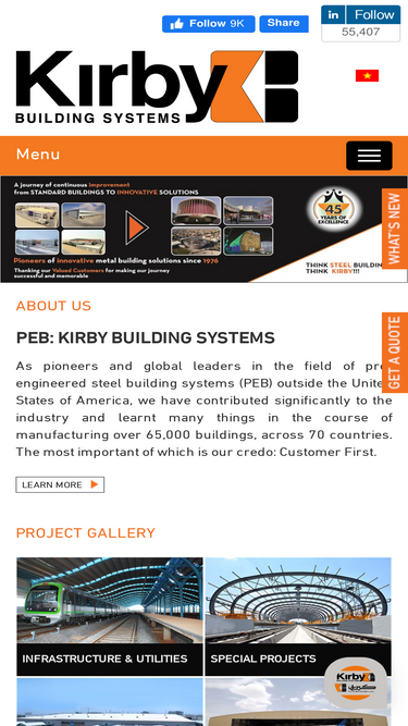 73%Kirby Building Systems, headquartered in Kuwait, is a global leader in pre-engineered and structural steel buildings. We deliver high-quality, safe, and fast construction solutions tailored for diverse industries. With advanced manufacturing facilities in Saudi Arabia, United Arab Emirates, Vietnam, and India, Kirby ensures world-class engineering and customer-focused services across the Middle East, Asia, and beyond.