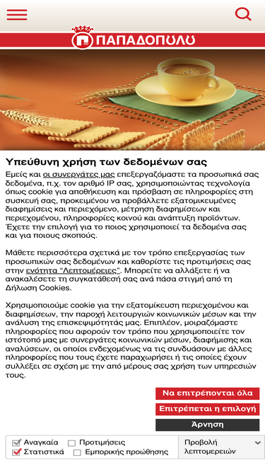 88%Μπισκότα Παπαδοπούλου, μια σύγχρονη βιομηχανία τροφίμων, πιστή στο τρίπτυχο: καινοτομία, ποιότητα, σεβασμός στον καταναλωτή. Δείτε προϊόντα & συνταγές!