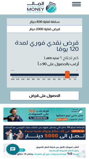 100%قرض او تمويل سريع جدا. احصل على نقود تصل إلى 999 دينار في10 دقائق. املأ الطلب عبر الإنترنت أو تفضل بزيارة أحد فروعنا. فترة سداد تصل إلى 30 يوم.