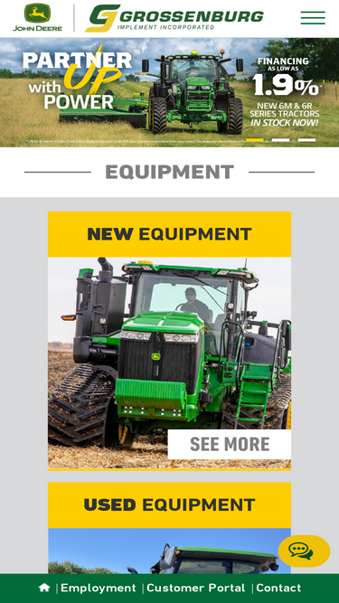 75%grossenburg implement is proud to provide over 85 years of cutting-edge farming technology and john deere equipment to your area. let