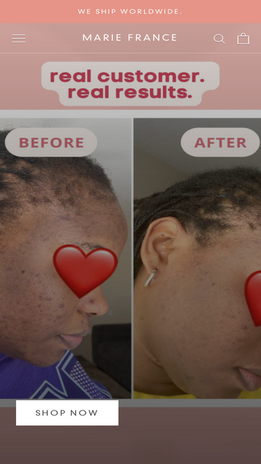 94%Imagine a dark spot-free, even and brighter skin! At mariefrance, we use potent & natural ingredients to enhance natural beauty and empower women. Our vegan products are carefully formulated to fade dark spots, even and brighten skin tone. Our products are cruelty-free, fragrance-free, natural and hydroquinone-free.