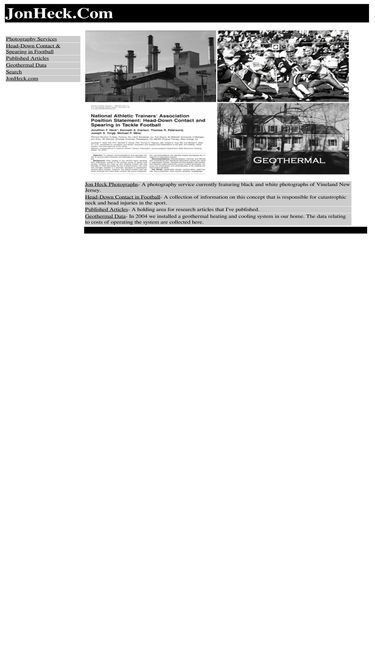 100%web site for jon heck featuring photography, sports medicine information, and geothermal data.