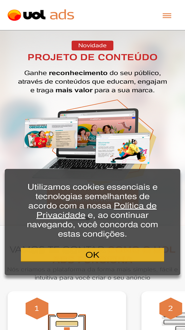 80%Comece a anunciar online com a ferramenta de anúncios UOL ads e faça sua estratégia de marketing digital alcançar novos públicos e resultados.