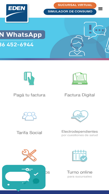 89%Trabajamos todos los días Conocé las obras programadas. Conocé + Simulador de consumo Usá bien tu energía. Conocé + EDEN te llama Solicitá un