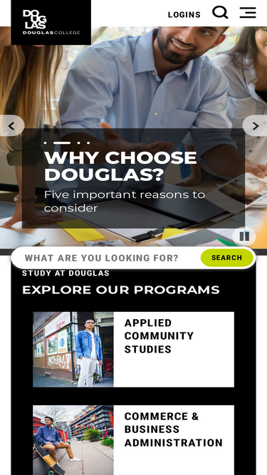 93%located in greater vancouver, douglas college is one of the largest public colleges in bc, canada. founded in 1970, the college serves some 14,000 credit students, 9,000 continuing education students and 1,400 international students each year.