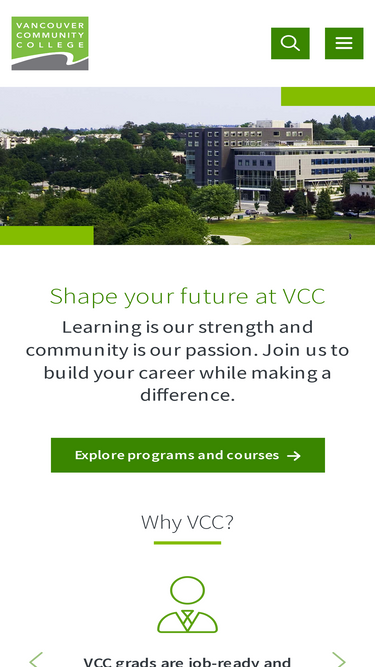 90%the official website for vancouver community college (vcc). we are vancouver community college, a publicly-funded college in operation since 1965 and holding eqa status from the government of british columbia’s ministry of advanced education.