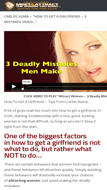 100%CLICK VIDEO TO PLAY “Attract Women – 3 Deadly Mistakes” How To Get A Girlfriend – Tips From Carlos Xuma A lot of guys read too much into how to get a girlfriend. In...