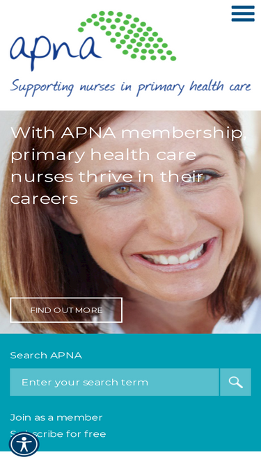 98%the australian primary health care nurses association (apna) is the peak body and professional membership association for all nurses working outside of a hospital setting in australia.