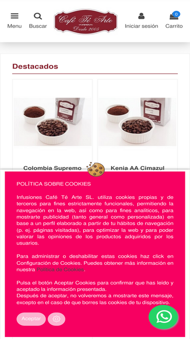 92%Tu tienda Online de Café y Té. Accesorios para café y té con envió GRATIS 10% DTO compras más de 1kg.