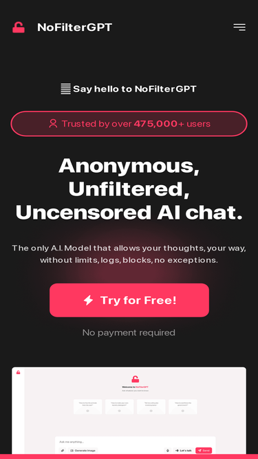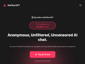 92%Dare to explore the uncensored side of AI? NoFilterGPT.com offers a unique platform for raw, unfiltered and anonymous ChatGPT interactions. Discover the untamed AI experience.