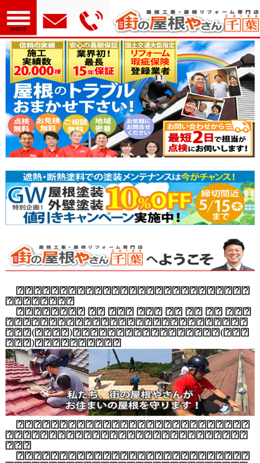 92%『街の屋根やさん』は信頼の施工実績10,000棟突破!屋根工事、漆喰工事、屋根葺き替え、板金工事、カバー工法、雨漏り防水工事、屋根塗装など屋根リフォーム全般を直接施工!高品質・低価格にて千葉県の皆様の大切なお住まいをお守りします。