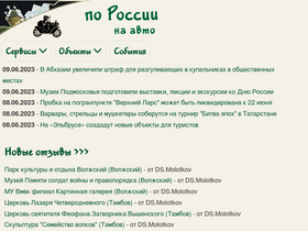 100%Сайт посвящен автотуризму. Разделы: Мои путешествия, Чужие истории, Фотогалерея, Сел и поехал - описание маршрутов в регионах России, Рейтинги от Eeyore© - личные впечатления автопутешественника от объектов и достопримечательностей Карелии, Эстонии, Ленинградской, Тверской, Вологодской, Псковской и других областей
