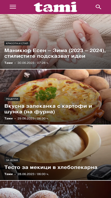58%Онлайн списание с тематики за мода, красота, лайфстайл, здраве, дом, градина, цветя, рецепти, хороскопи, хоби и други от Тами, Tami.bg