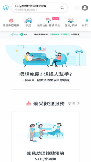 80%家務助理收費單次服務或套票由@HK$100每小時起,家務助理及鐘點價錢已包保險。新客戶輸入折扣碼 LazyApp 買每周套票,即減$150。Lazy有超過2千位專業家務助理/鐘點,持家務助理證書為你清潔家居。預約簡單方便,網上支援更改時間。
