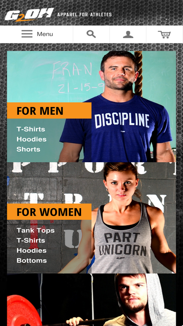 83%G2OH makes apparel for athletes and fitness enthusiasts who lift weights, work out, seek to run faster, jump higher, do another rep, perfect their form, learn a new move, or pick themselves up off the ground for another round.